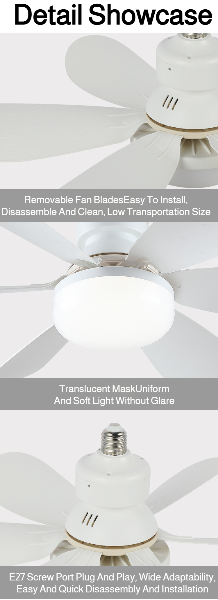 New screw fan light living room restaurant minimalist home ceiling chandelier integrated ceiling fan