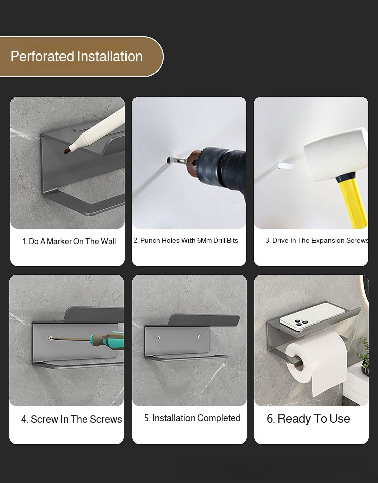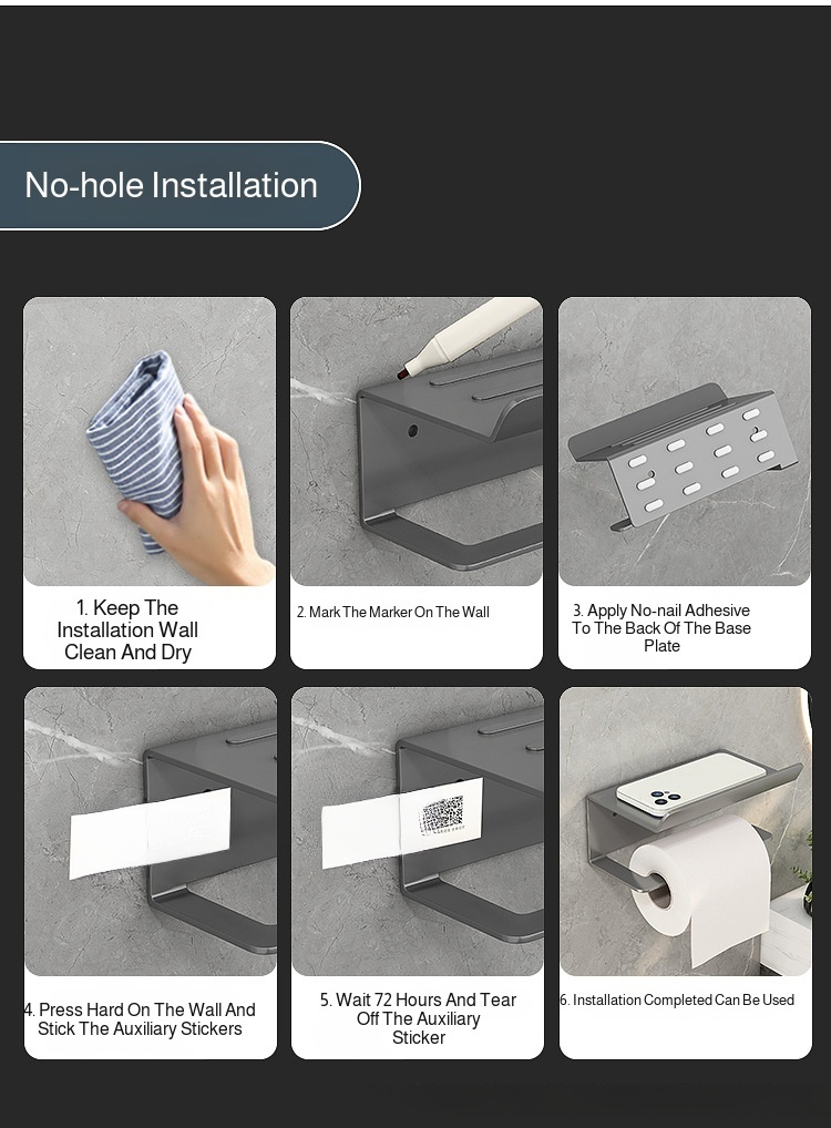 Nopunch bathroom stainless steel paper roll holder for cell phone shelf